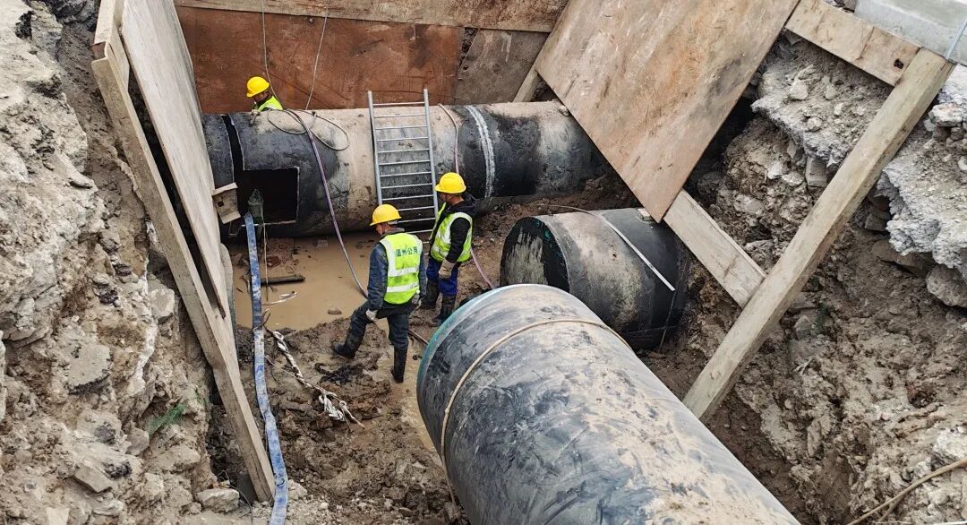 市铁投集团建设分公司积极对接交通有关部门,采集周边交通流量,预判周边道路拥堵情况,针对性编制交通疏导方案,加大道路疏导人力、物力投入;提前对接施工方案,优化接水施工工艺,将单次停水时间控制在18小时以内,同时准备好应急抢险设备,尽量减少对周边居民用水影响。历经14个小时,DN1400给水管最终顺利完成迁改。